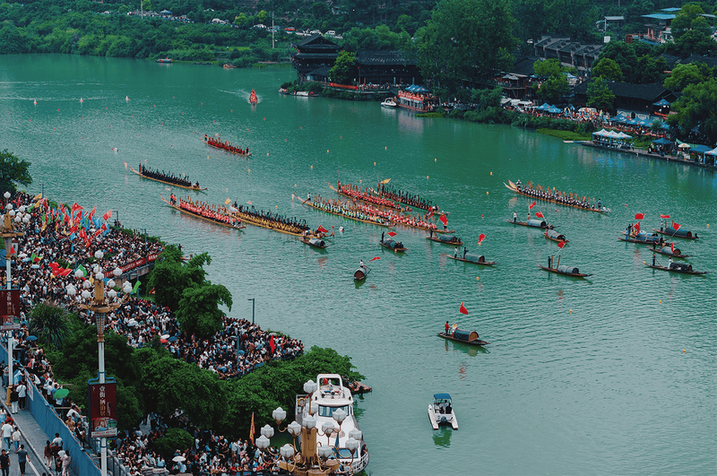 锦江河畔的“中国传统龙舟赛”、公开水域游泳赛等,已成为铜仁市体育旅游的闪亮名片。刺激的桨板比赛、各类“板澡”擂台挑战赛、“狗刨式”游泳擂台赛等丰富多彩的水上赛事活动,吸引了全国各地水上运动爱好者和游客慕名而来,带动了本地餐饮、住宿、购物等相关产业的蓬勃发展,为铜仁的文旅发展注入强大动力。